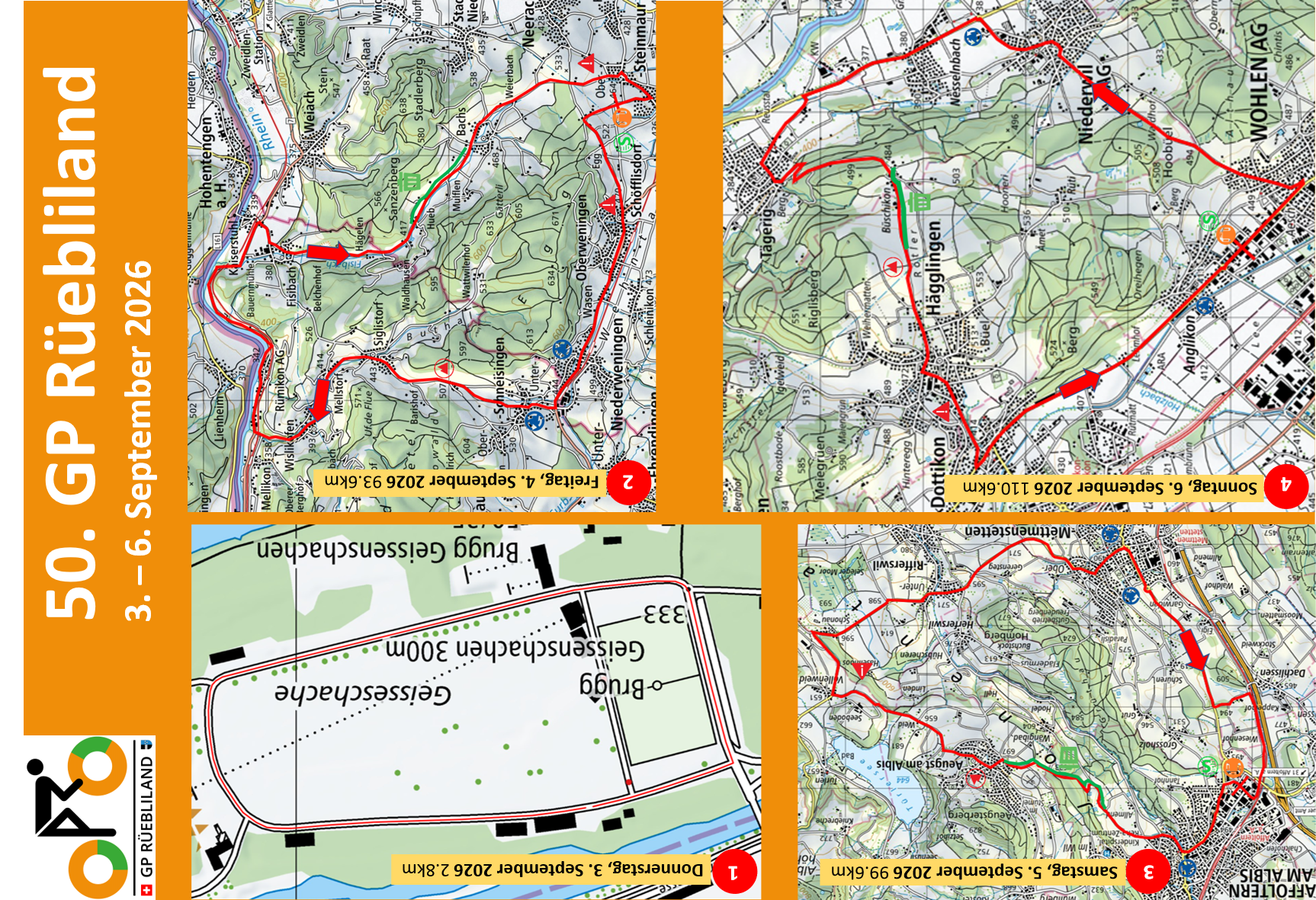 Der GP Rüebliland - eine der bedeutendsten Radrundfahrten für Junioren - hat in diesem Jahr etwas zu feiern. Zum 50. Mal findet sie statt. Als Jubiläums-Supplement wird die diesjährige Tour, die vom 3. bis 6. September stattfindet, um einen Tag verlängert. Etappenorte sind diesmal Brugg (Donnerstag, 3. 9.), Steinmaur (Freitag, 4. 9.), Affoltern am Albis (Samstag, 5. 9.) und Wohlen (Sonntag, 6. 9.).